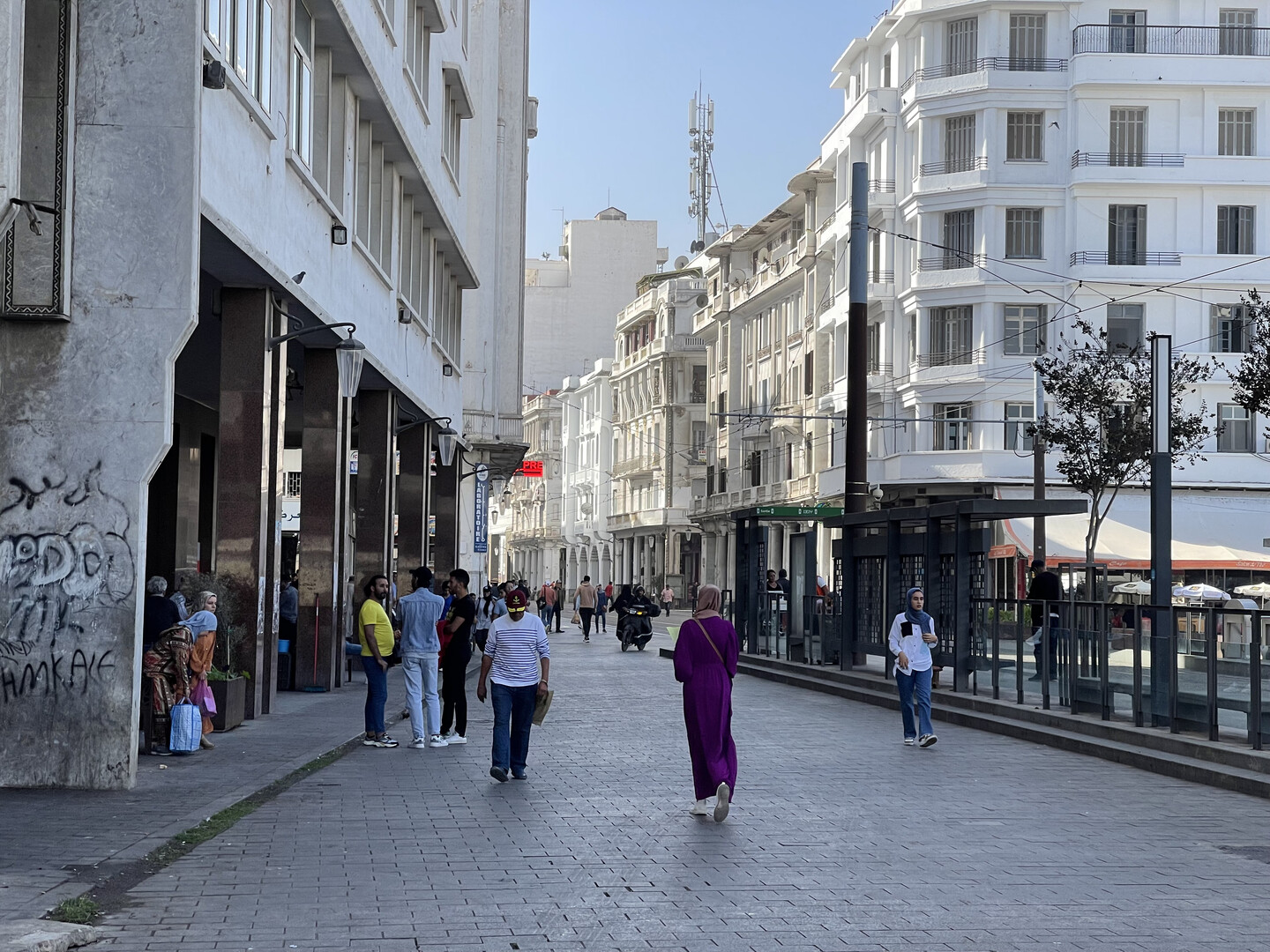 The next morning, I walked about 10 minutes to the newly opened tram station that connected the nearby heavy rail station with the city center. It cost 7dh ($0.70) for a clean, smooth, and safe ride on a German-built tram. (I took a picture of the tram, but a station security guard made me delete it - it was only later that I realized it was because he was in the picture.)