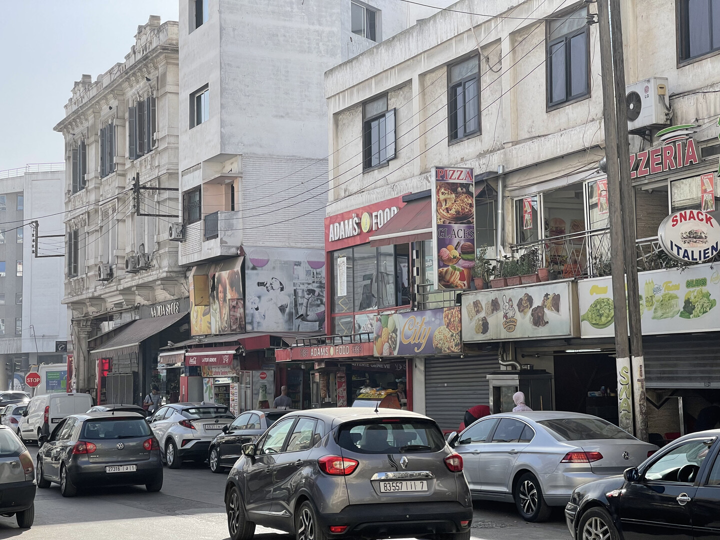 Unlike most big-city downtowns, Casablanca makes no attempt to project a veneer of order or civility. Cars are triple-parked on both sides of the road, creating one-way bottlenecks; trash is everywhere; deformed strays limp around between cafes, trying their best to live another day. Tourists are scarce in the busiest quarter of Morocco's busiest city.