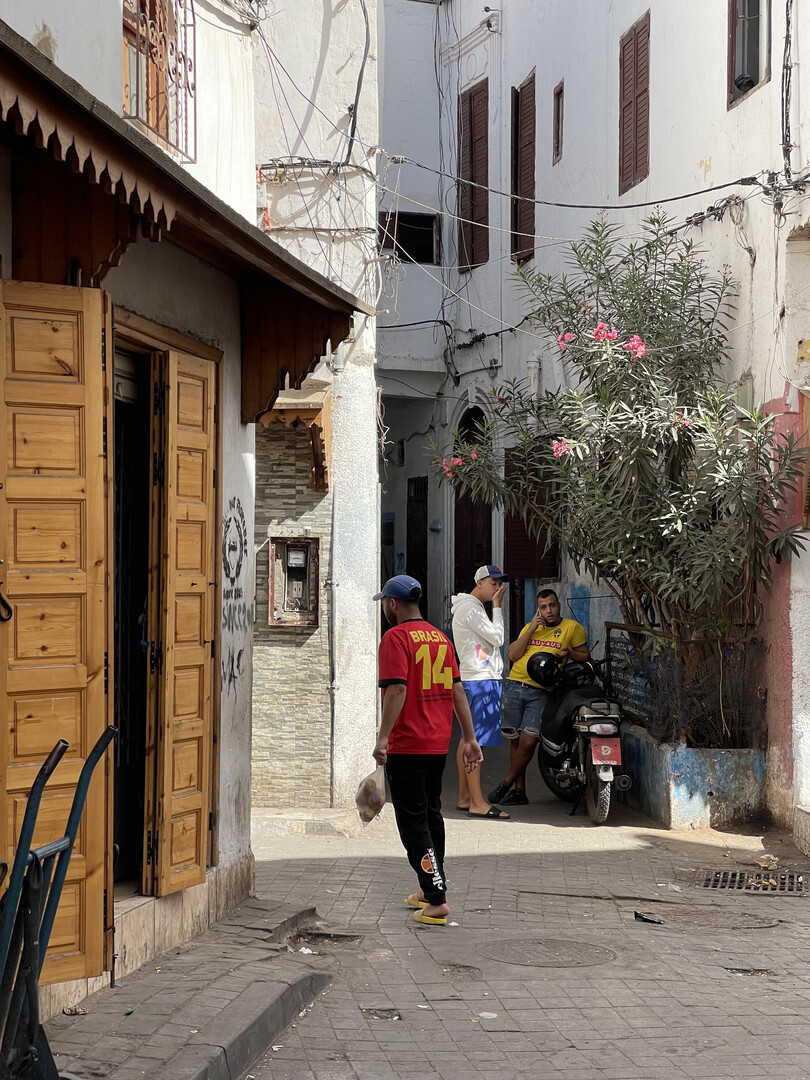 A wide boulevard segregates the colonial-era casas blancas from the medina: the dense labyrinth of shops and homes at the center of every Moroccan city.
