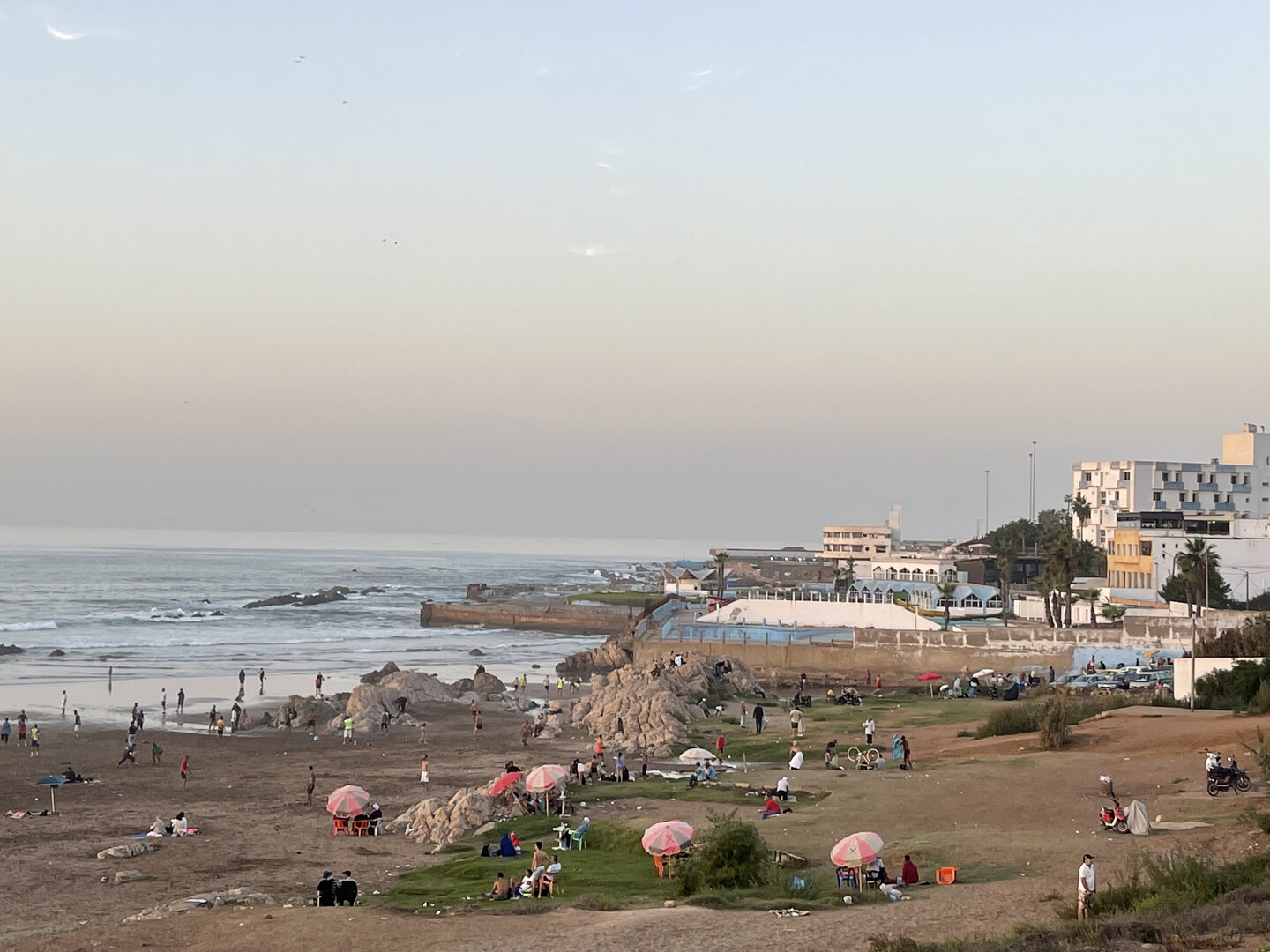 I went for a sunset walk along the beach at the corniche - a word synonymous with class and wealth everywhere in Morocco. Even here, however, trash is strewn everywhere. The sunset illuminated a vaguely apocalyptic scene of polluted air and polluted ground.