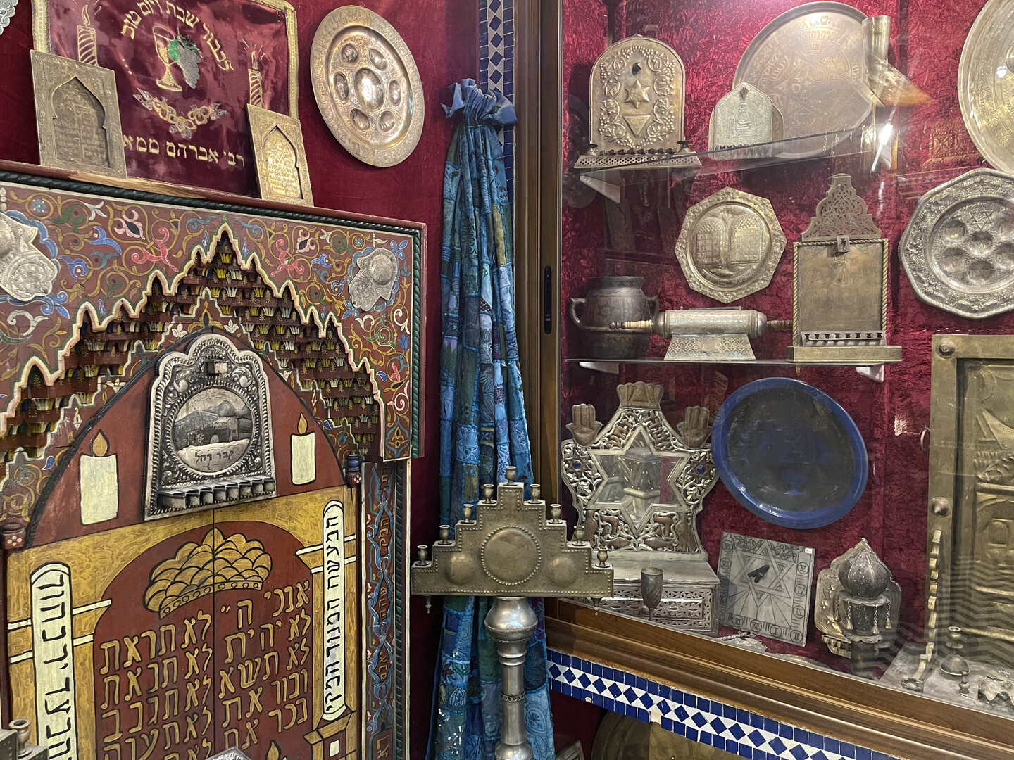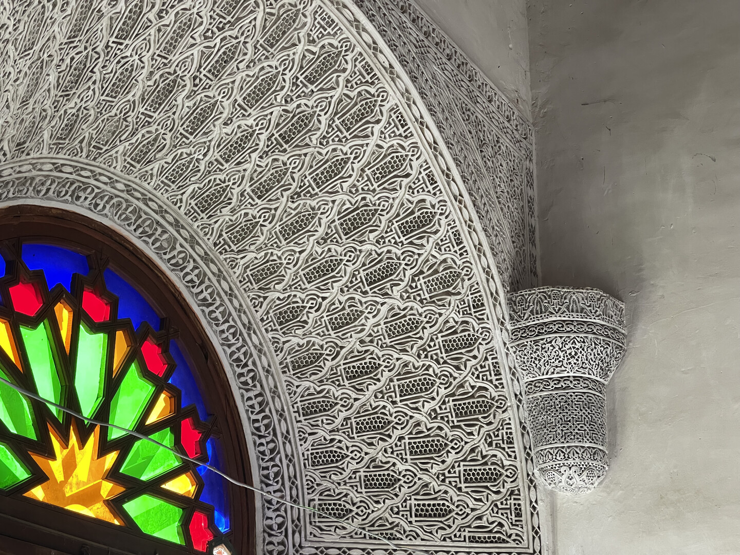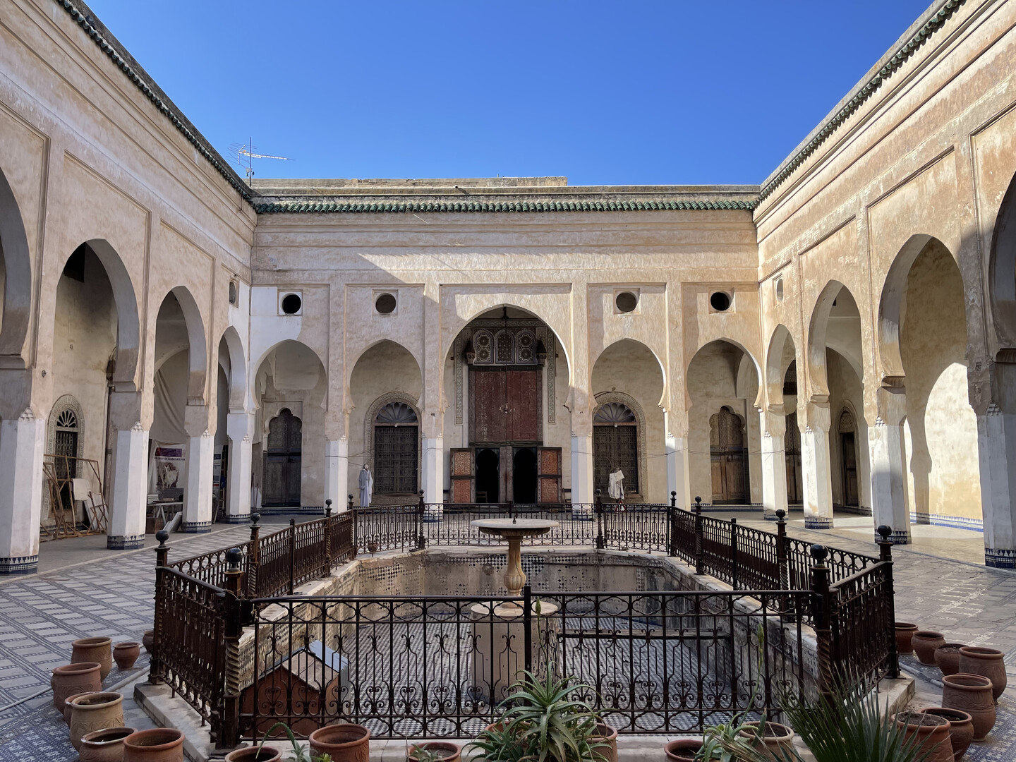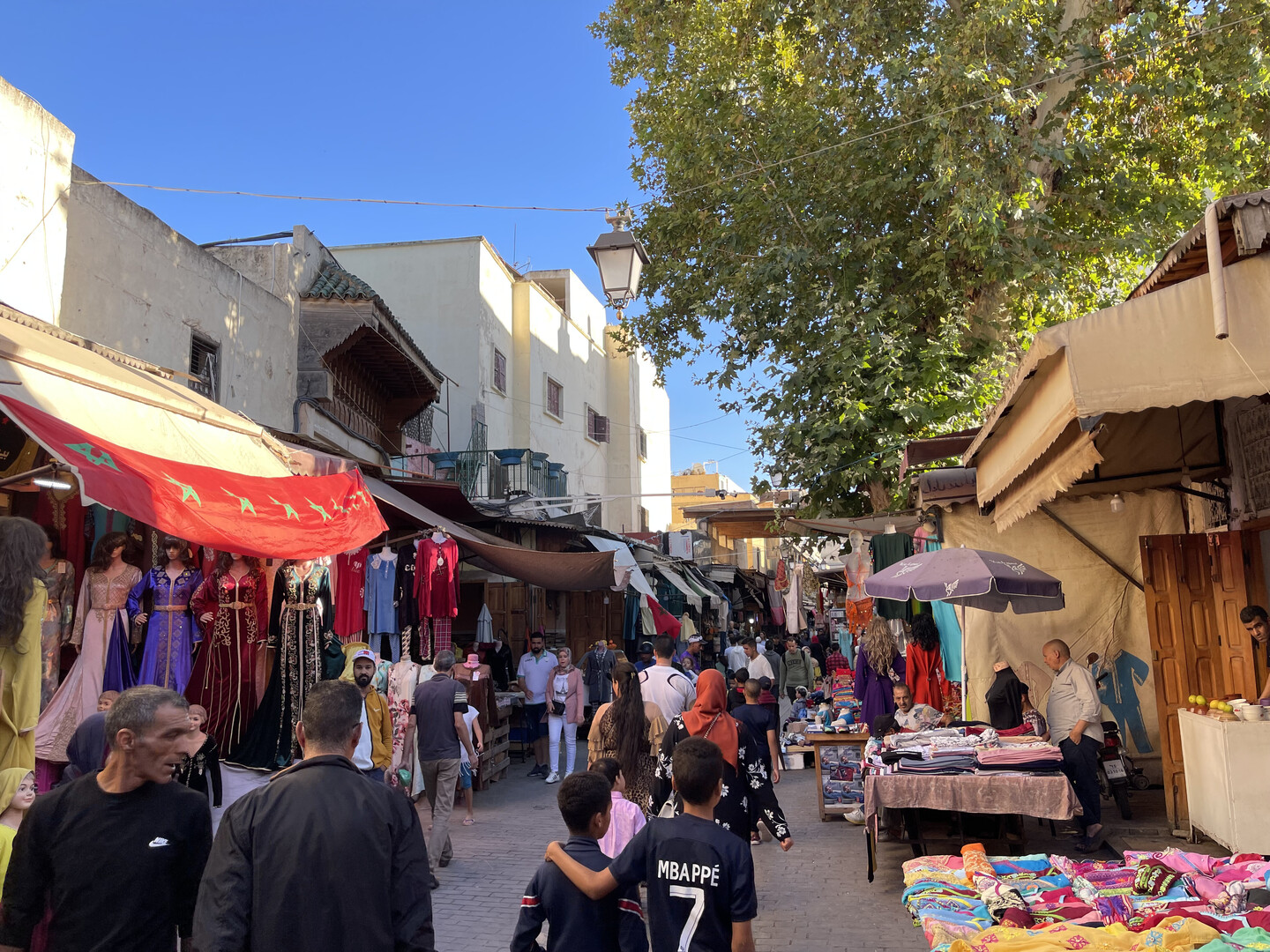 Past the park is a long pedestrianized avenue of clothing and jewelery shops that was supposedly the Mellah. It was unclear where it started because all the men were uniformly swarthy and mustached, and quite a few Muslim women in Morocco go hijab-less, so there was no visible indication of anyone's creed. As far as I could tell, the only significant difference between the Jewish Quarter and the rest of the city was that synagogues charged entry fees while mosques did not. Upon further investigation, I learned that "in 1997 there were reportedly only 150 Jews in all of Fez and no functioning synagogues remained in the Mellahw," and I assume all the remaining Jews have since moved to Israel, so I guess the "Jewish Quarter" name is just window-dressing.