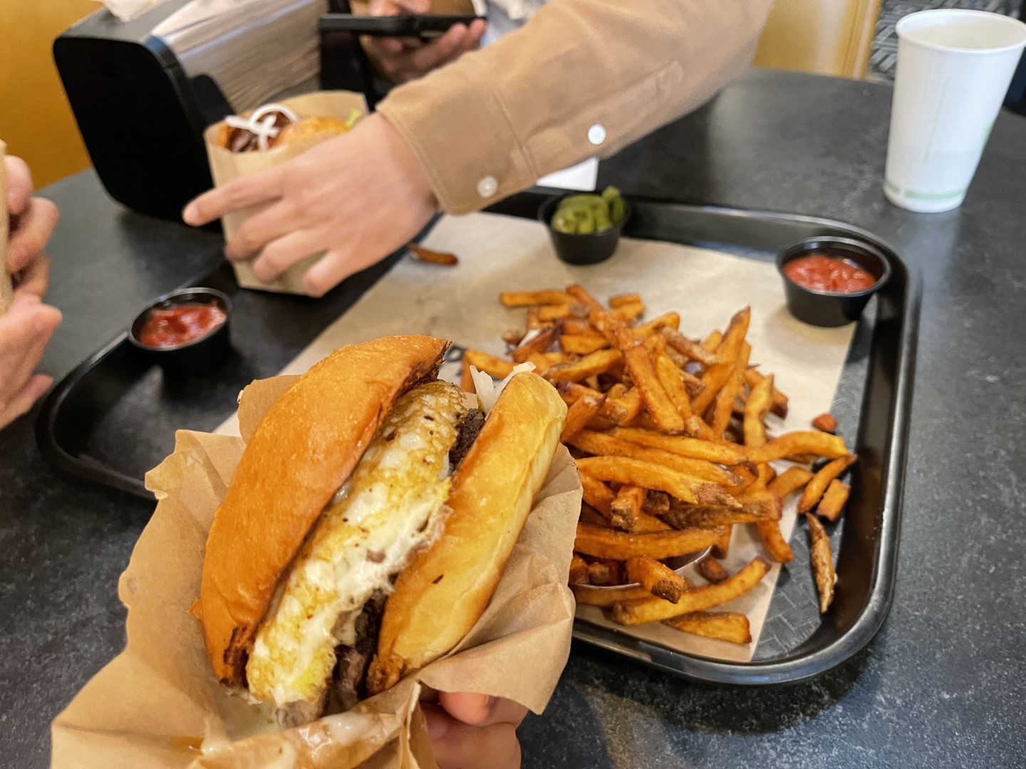Sheltering from the snow with a delicious burger from Wild Pastures Burger Company.