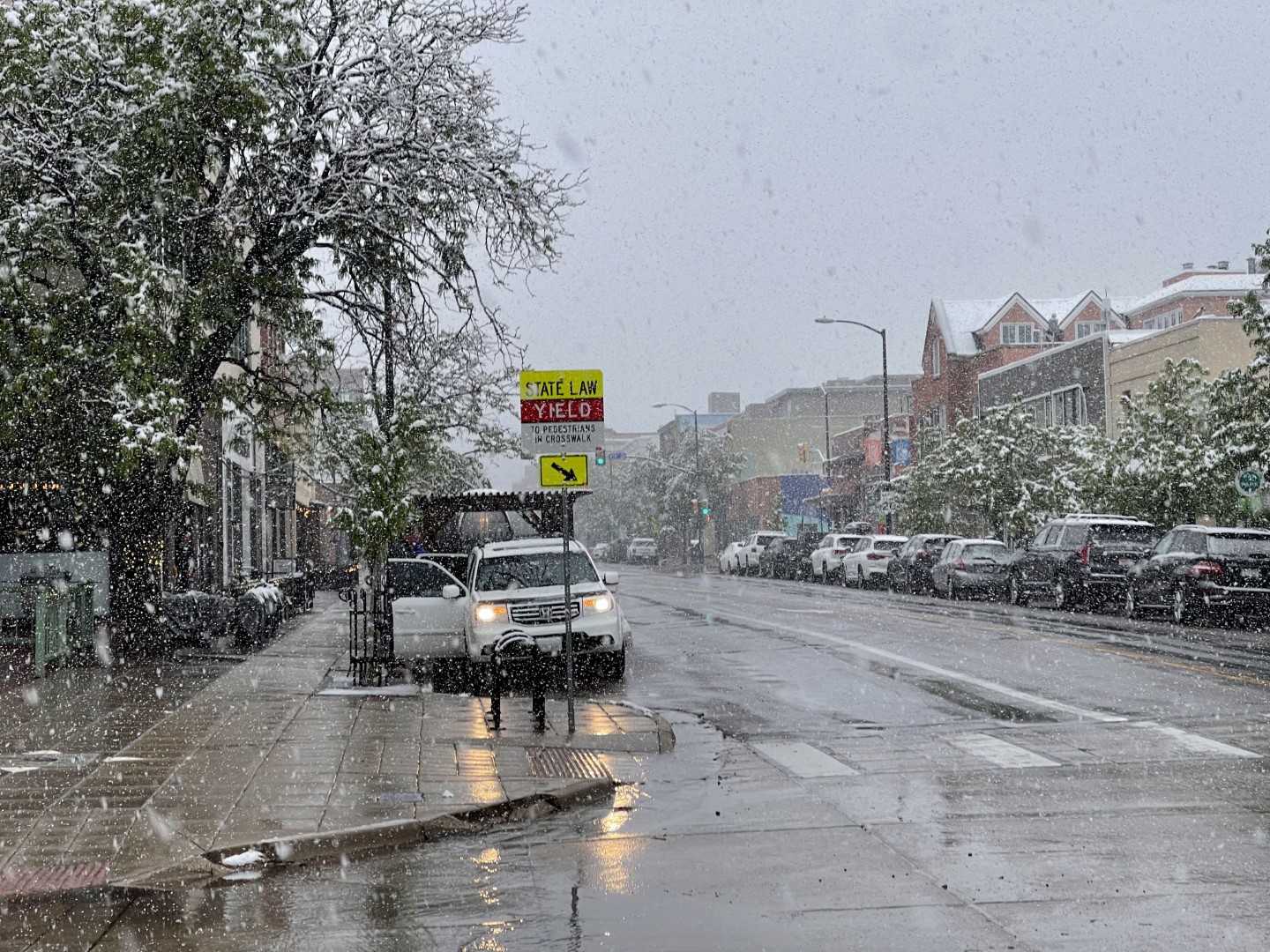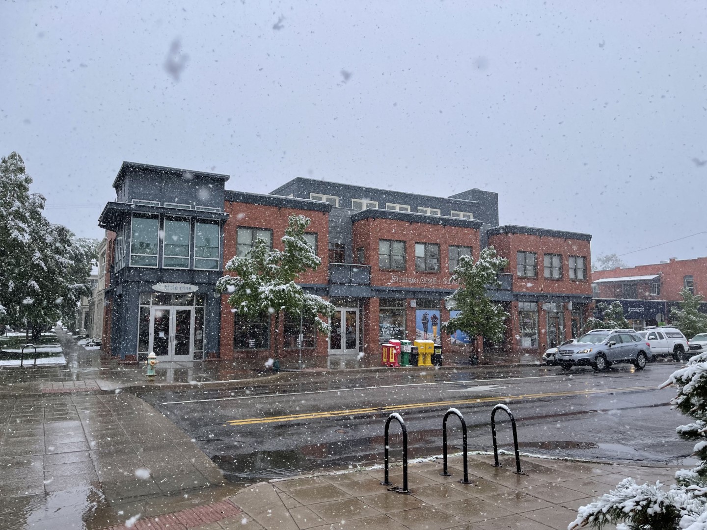Snowy downtown Boulder.
