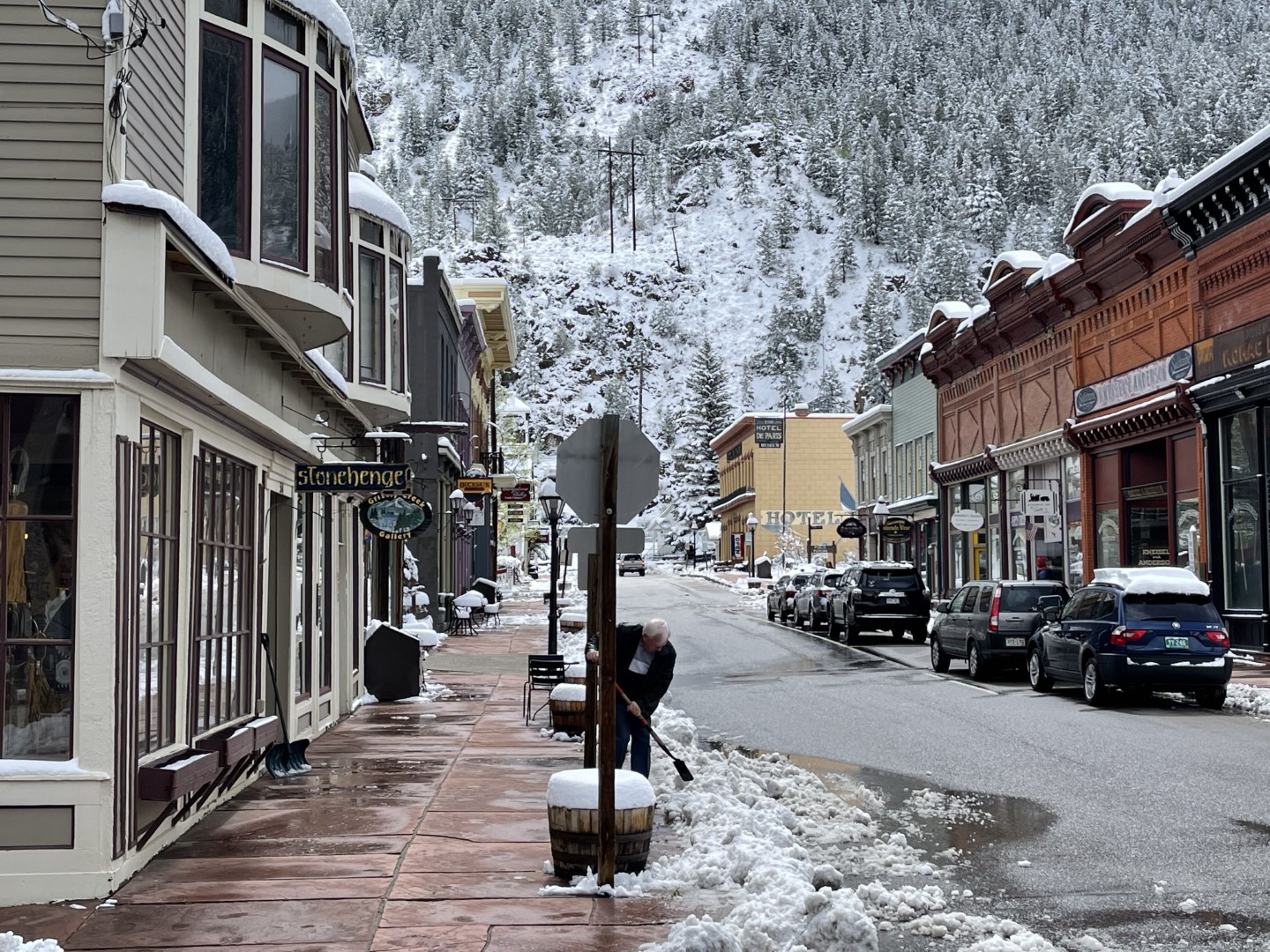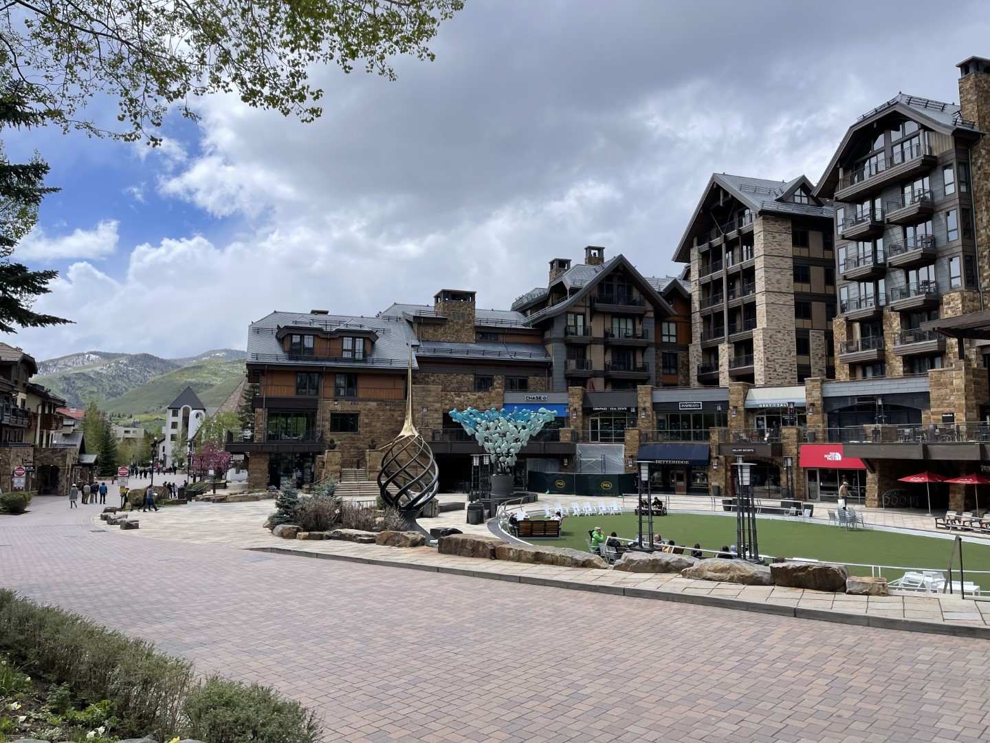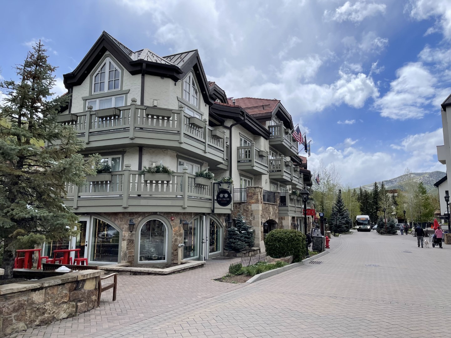 The elevation dropped several thousand feet as we continued west, and by early afternoon, most of the snow had disappared. We stopped to walk around the ski resort town of Vail.