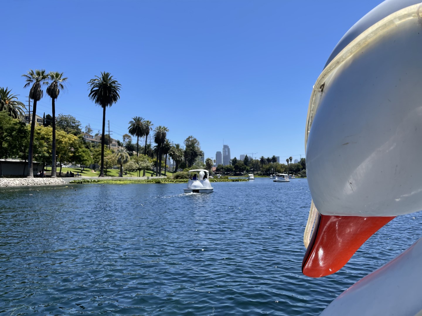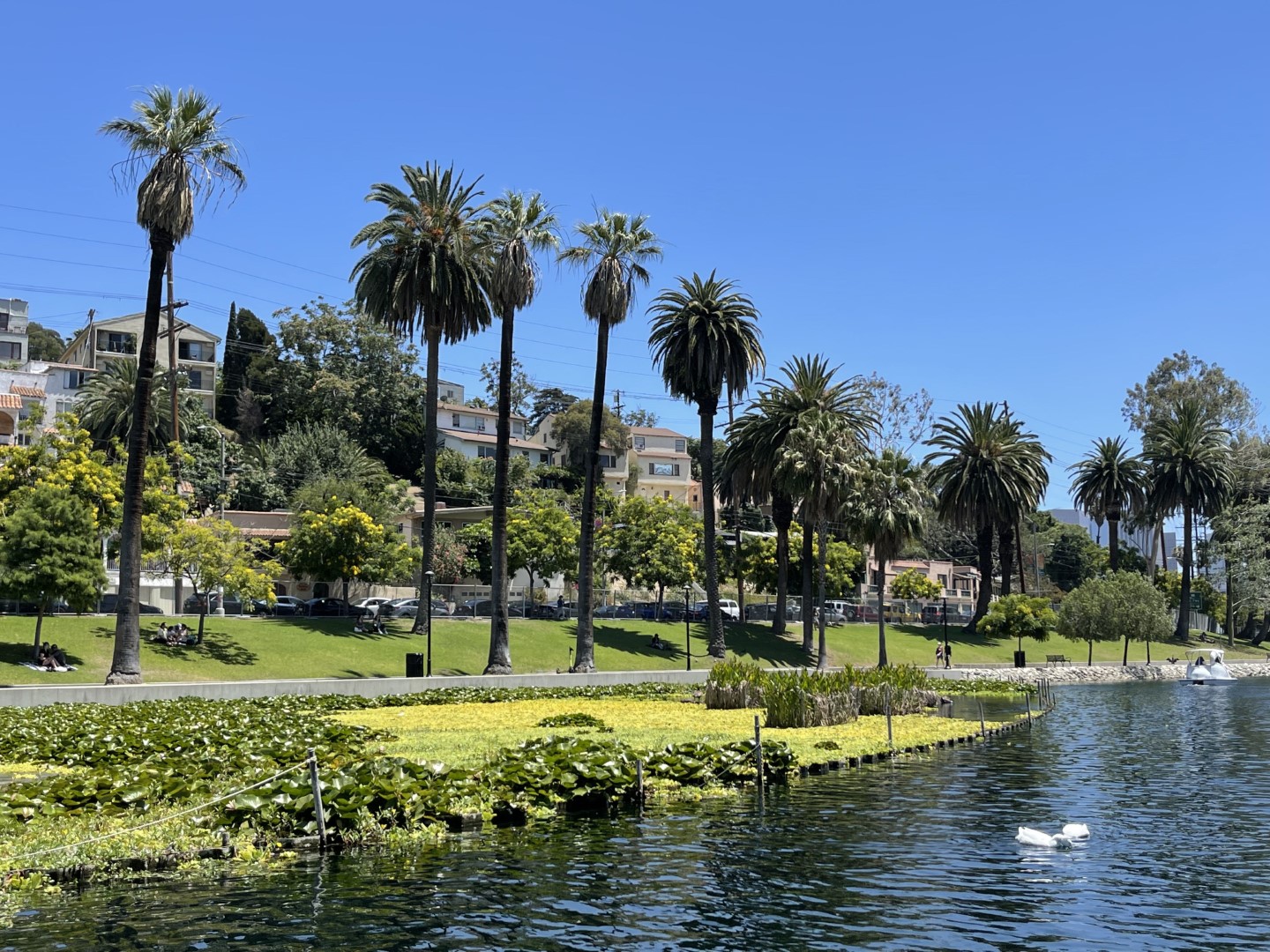 I was pleasantly surprised at the state of Echo Park. Friends from the area had told me it had turned into a massive homeless encampment over COVID, but it had been cleared out in March. With just 17 of the 183 evicted placed in long-term housing, high fences still surround the park, evidently to keep them from coming back at night.